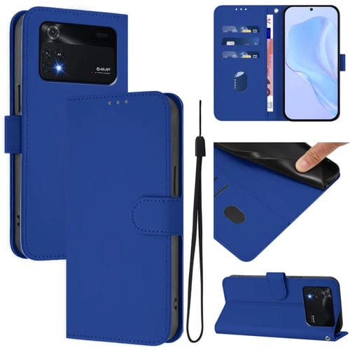 Funda de Piel Sintética con Cordón para Xiaomi Poco M4 Pro 4G (Azul Oscuro)