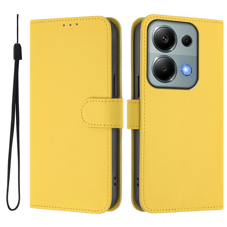 Funda de Piel Sintética con Cordón para Xiaomi Poco M6 Pro 4G (Amarillo Limón)