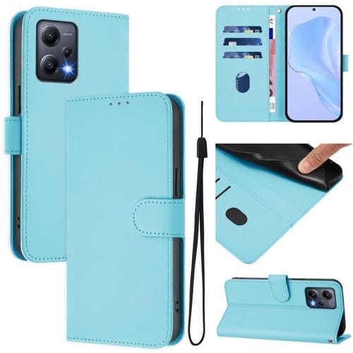 Funda de Piel Sintética con Cordón para Xiaomi Poco X5 (Azul Cielo)