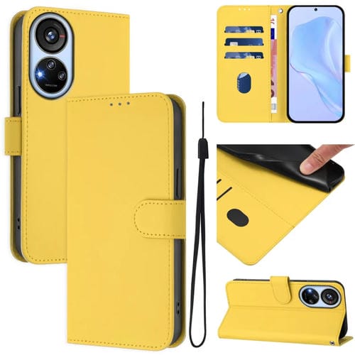 Funda de Piel Sintética con Cordón para ZTE Blade V40S (Amarillo Limón)