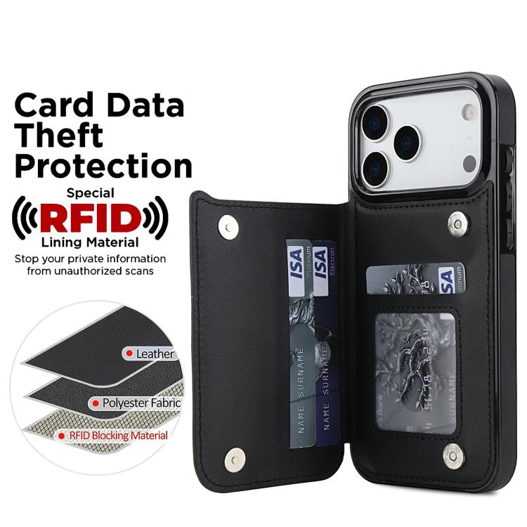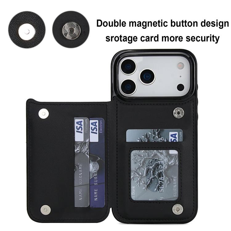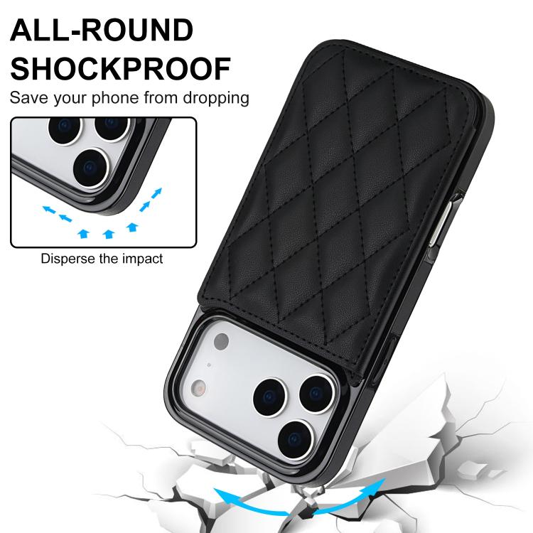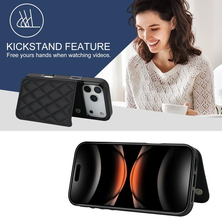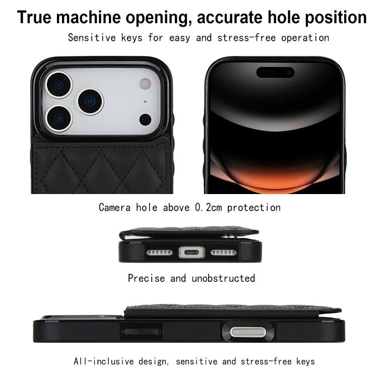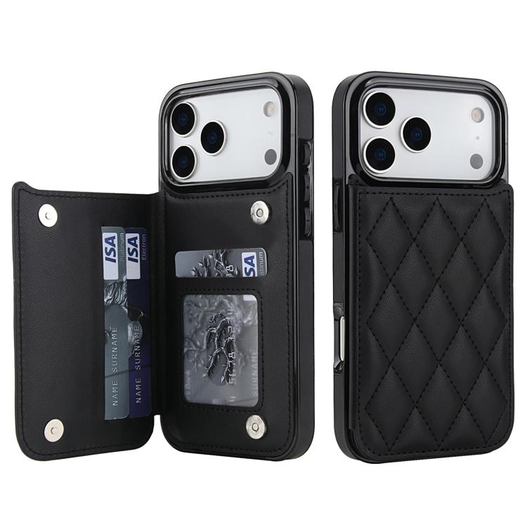 Funda de piel sintética con doble hebilla y diseño rómbico para iPhone 17 Pro (negra)