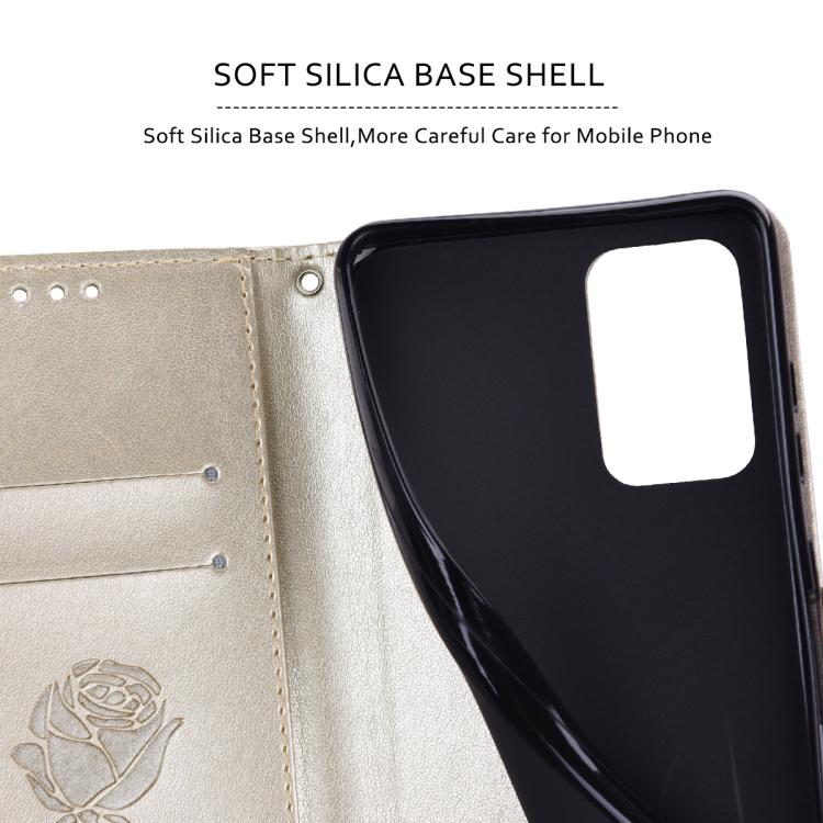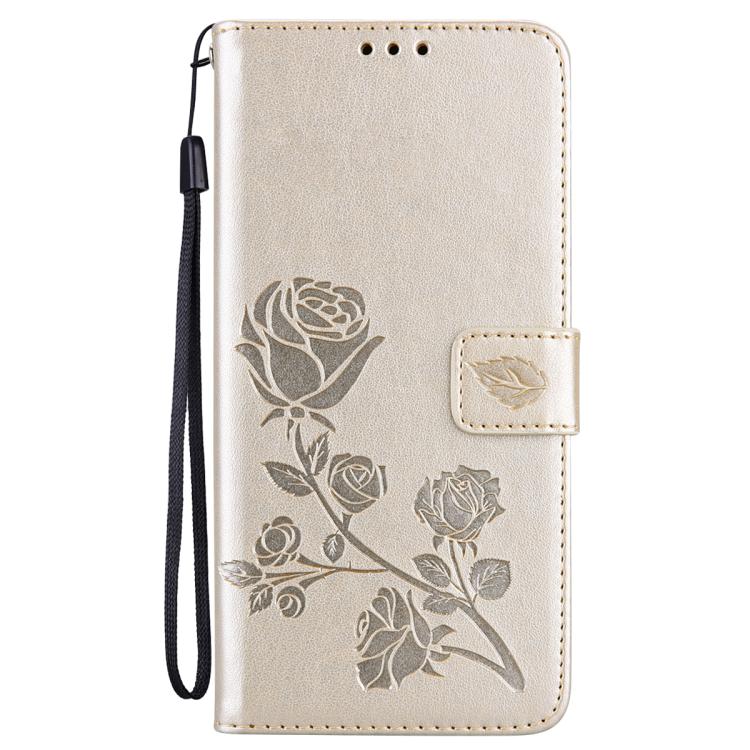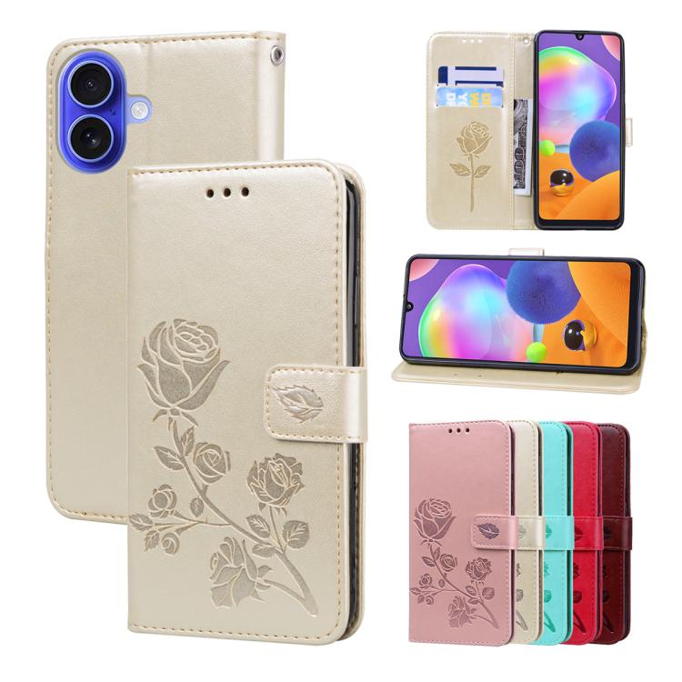 Funda de piel sintética con tapa abatible y relieve rosa para iPhone 17 (dorada)