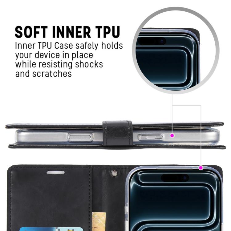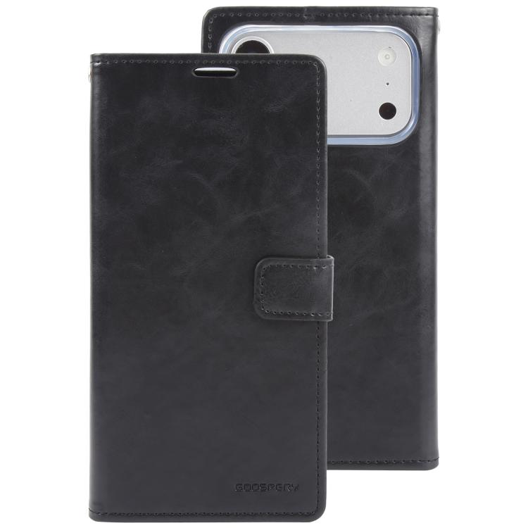Funda de piel texturizada Crazy Horse GOOSPERY BLUE MOON para iPhone 17 Pro Max (negra)