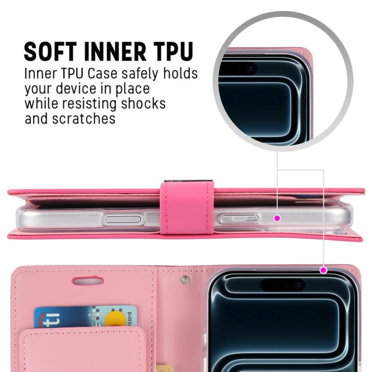 Funda de piel texturizada Crazy Horse GOOSPERY RICH DIARY para iPhone 17 Pro (Rojo Rosa)