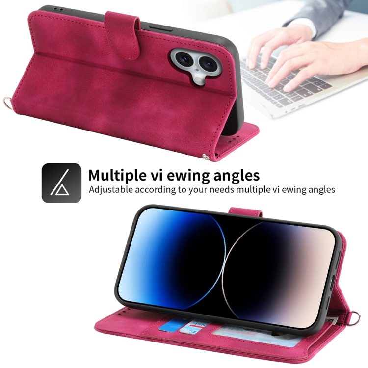Funda Tipo Billetera Piel iPhone 16 Relieve Flores (Rojo Vino)
