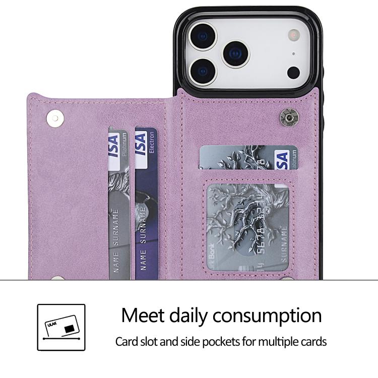 Funda de PU con doble hebilla y estampado de mariposa para iPhone 17 Pro (roja)