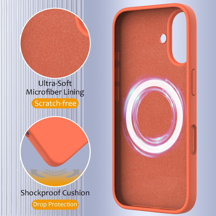 Funda de Silicona a Prueba de Golpes Magsafe para iPhone 16 Plus (Naranja Dorado)