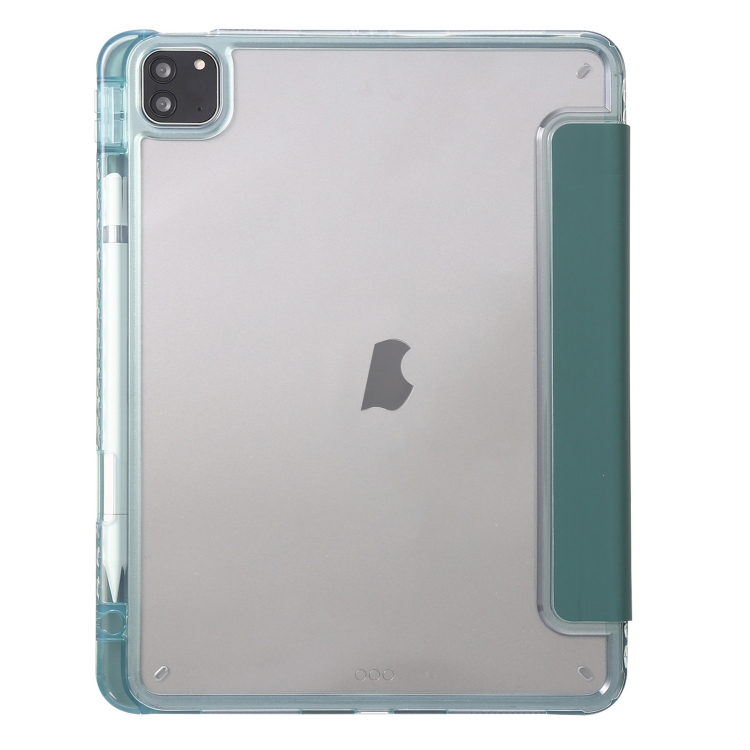 Funda de Tableta de Cuero Acrílico Transparente para iPad Pro 11 2022/2021/2020/2018 y Air 10.9 2022/2020 (Verde Oscuro)