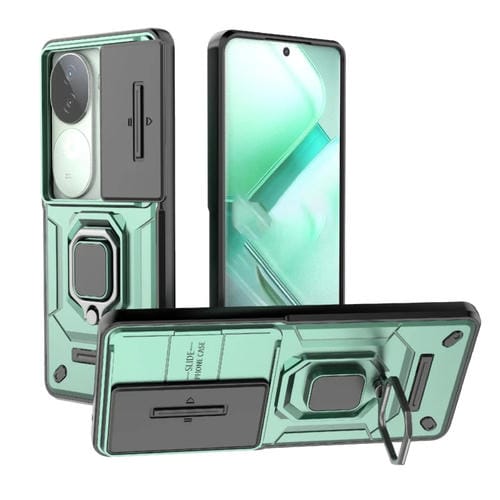 Funda Protectora de TPU + PC con Soporte para Vivo Iqoo Z9S 5G, con Diseño Deslizante y Antigolpes (Verde)
