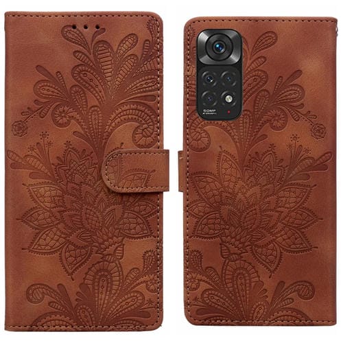 Funda de Teléfono con Hebilla Magnética de Pu con Encaje Floral En Relieve para Redmi Note 11 Global con Correa para la Muñeca (Marrón)