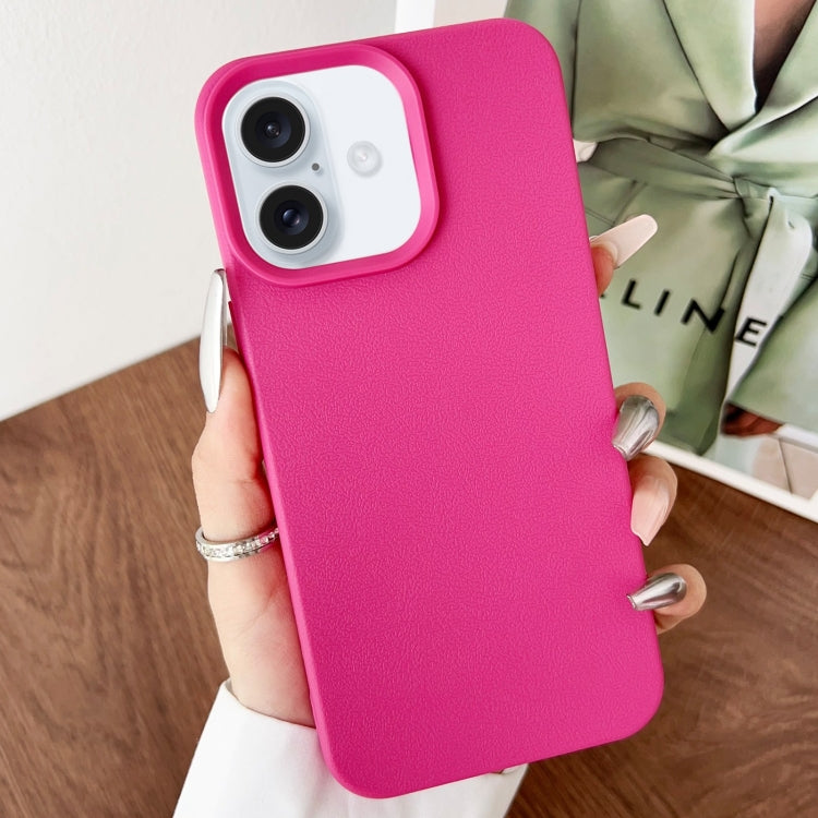 Funda de Teléfono TPU con Textura de Cuero para iPhone 16 (Rosa Rojo)