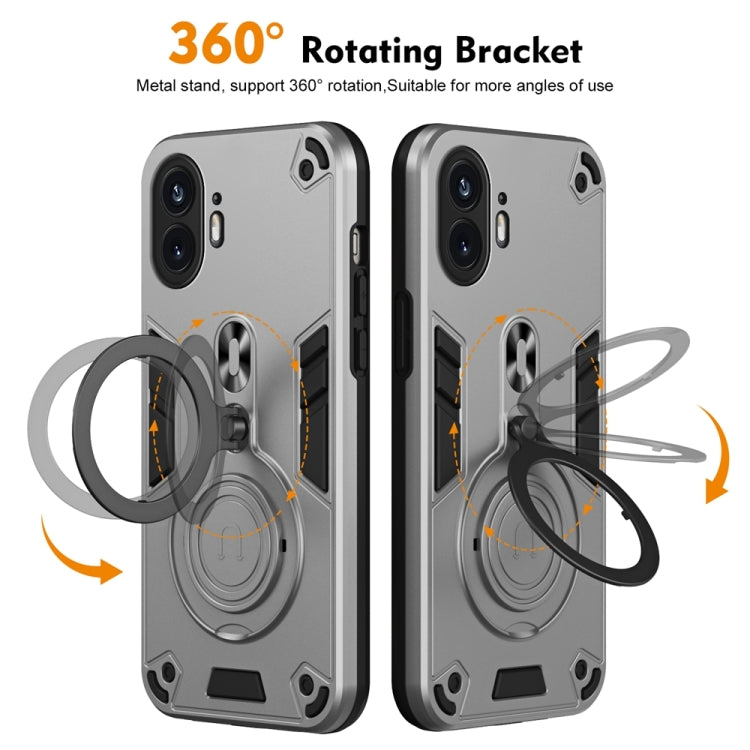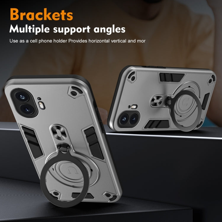 Funda de Teléfono PC + TPU con Soporte Giratorio 360° y Anillo Metal para Teléfono 2 (Gris Plateado)