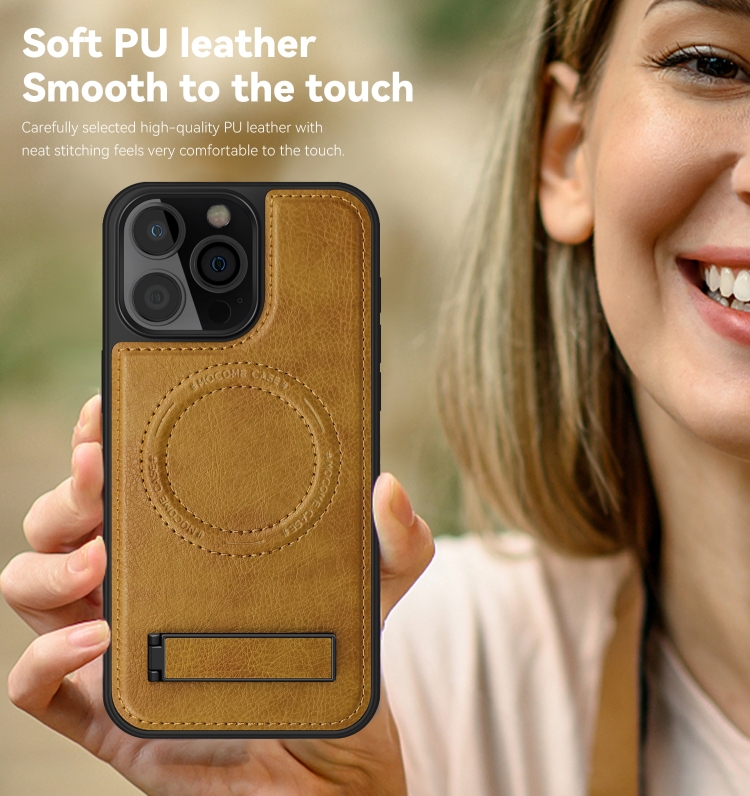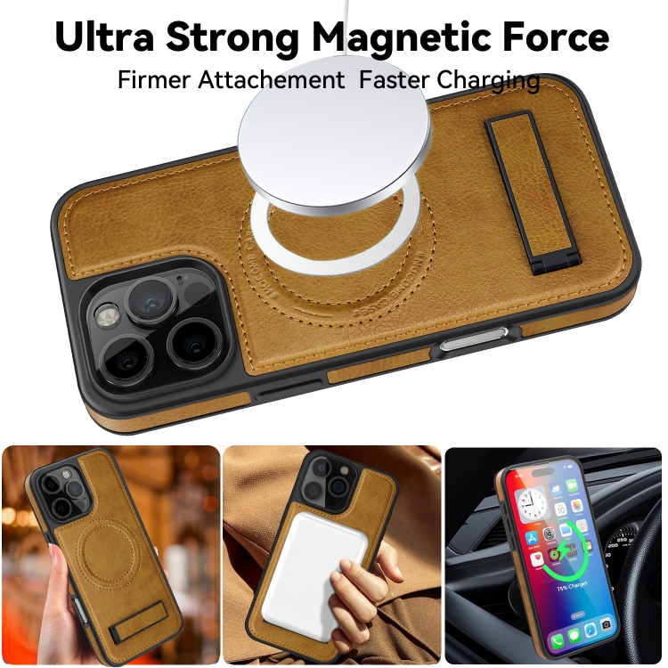 Funda de Teléfono PU con Soporte Multifunción Magsafe para iPhone 16 Pro Max (Marrón)