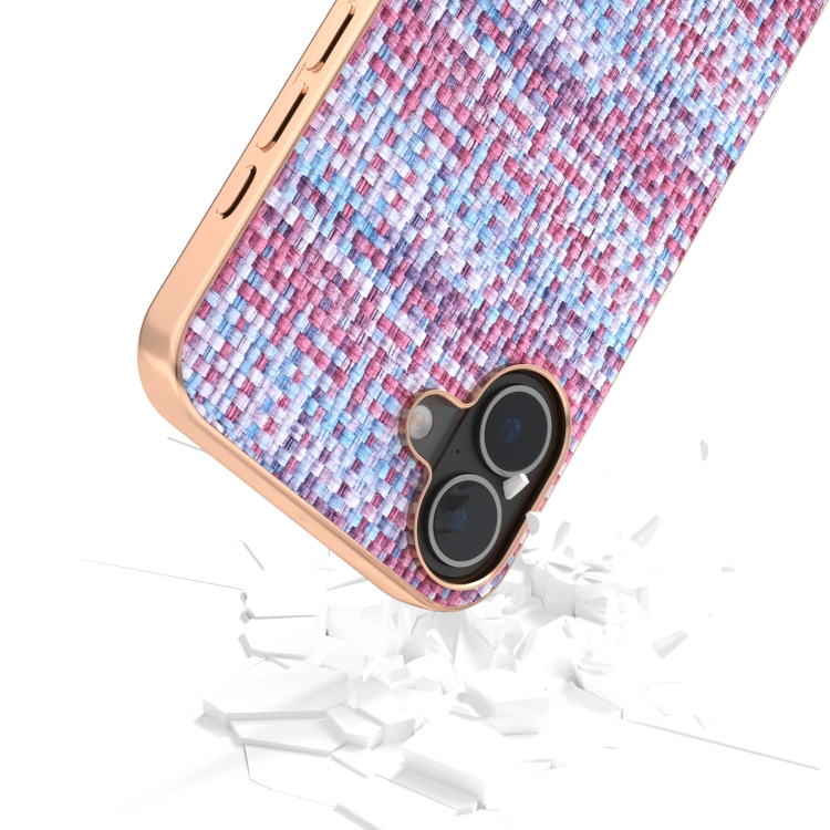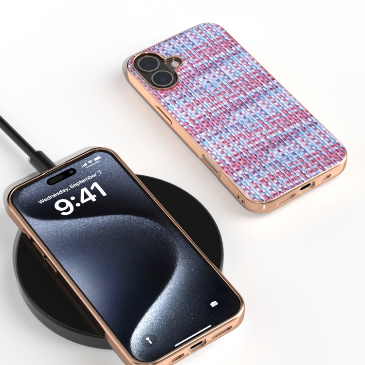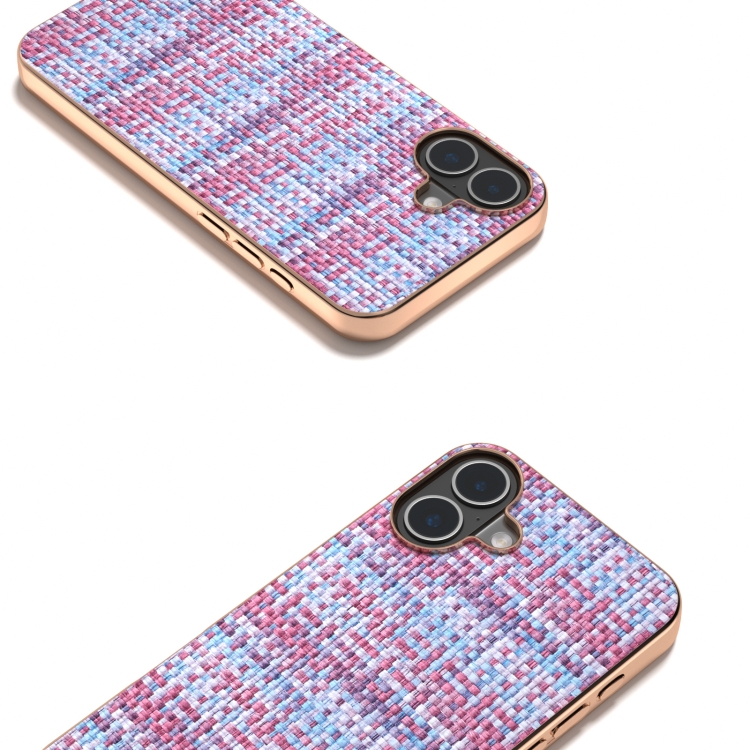 Funda de teléfono PU con textura de celosía y marco galvanizado para iPhone 16 (Púrpura)
