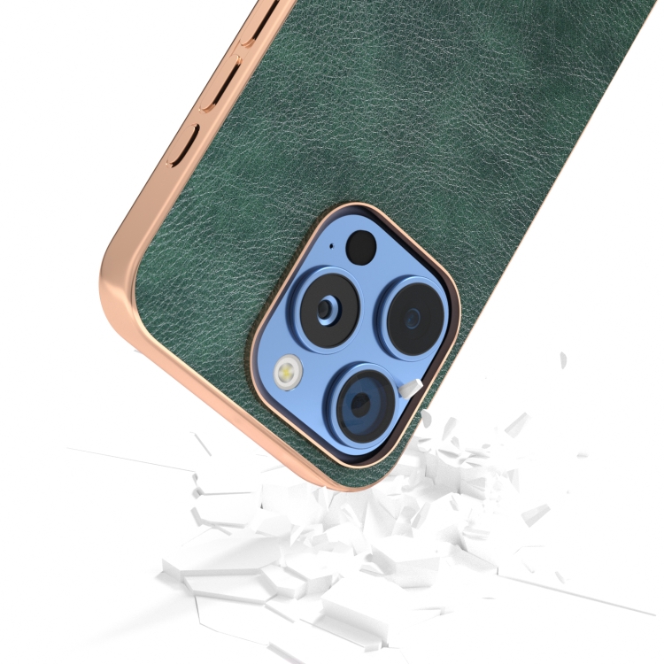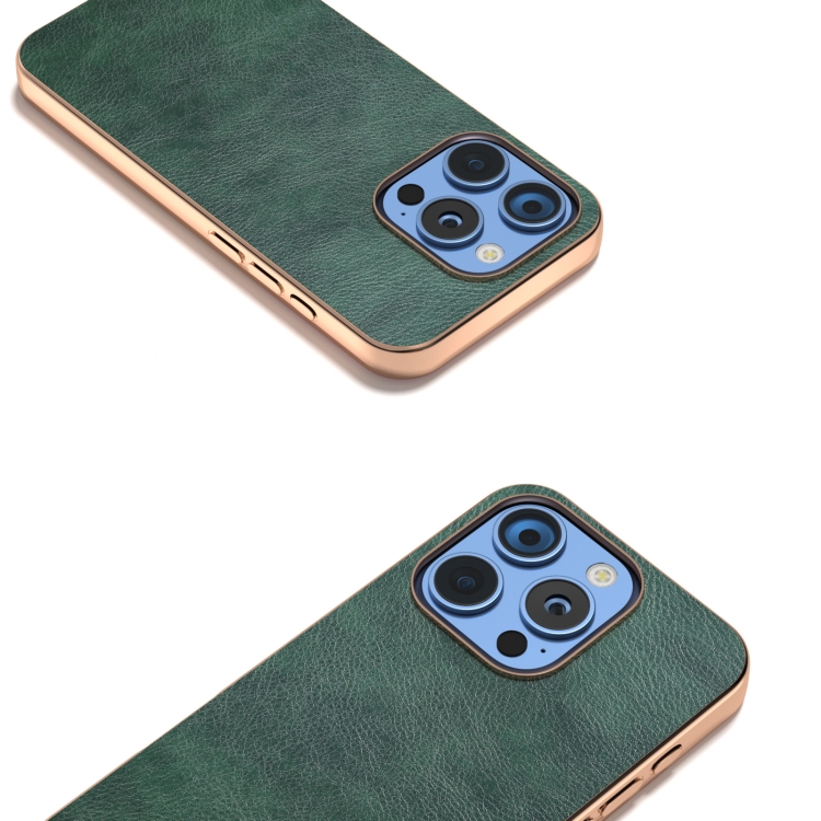 Funda teléfono PU textura Lichi dos colores Nano Galvanoplastia iPhone 16 Pro (Verde)