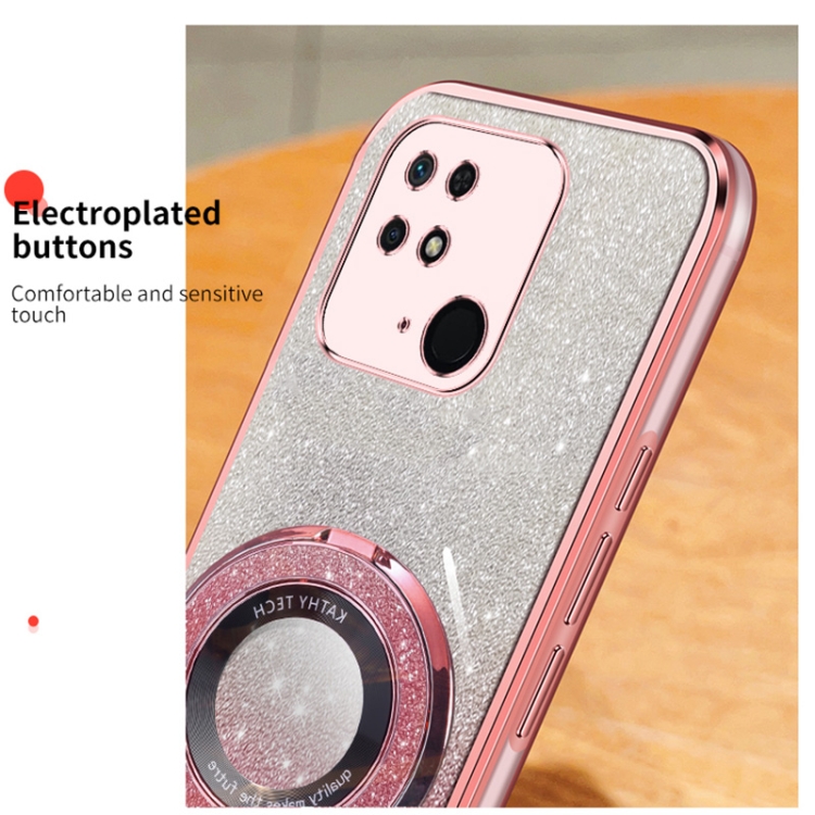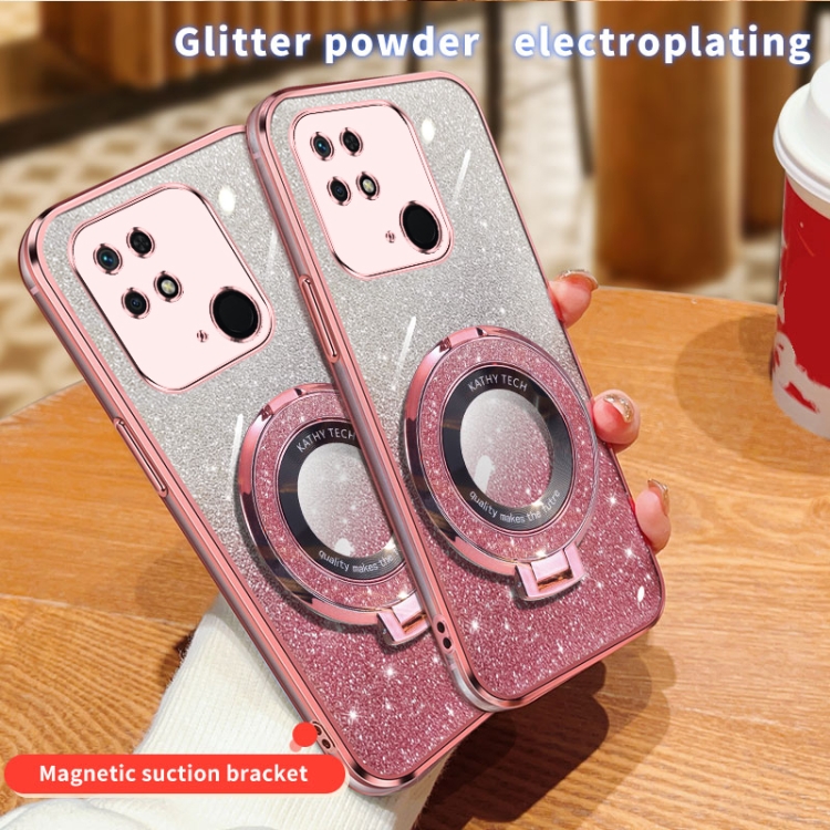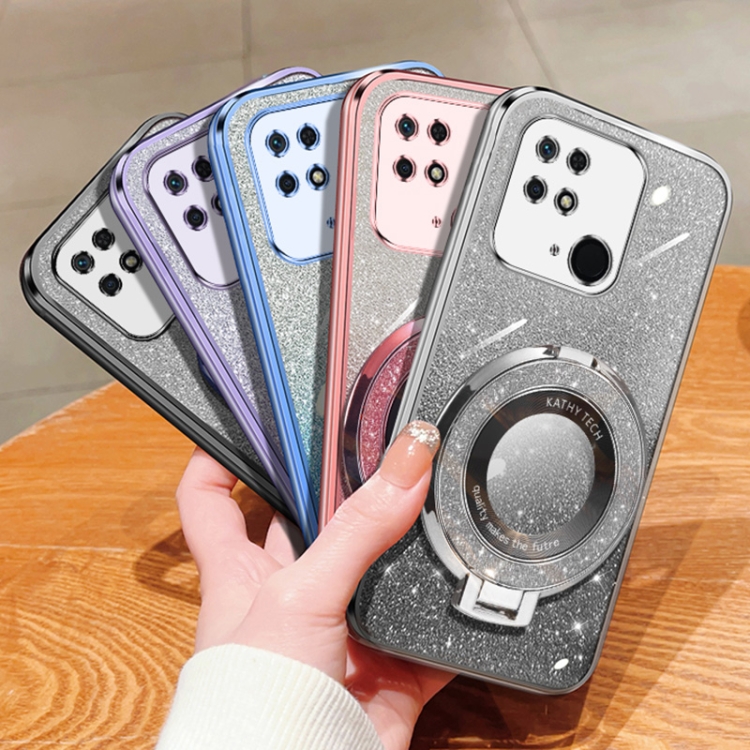 Funda de Teléfono de TPU con Soporte Redondo y Purpurina Degradada Chapada En India para Redmi 10C/10 2022 (Morado)