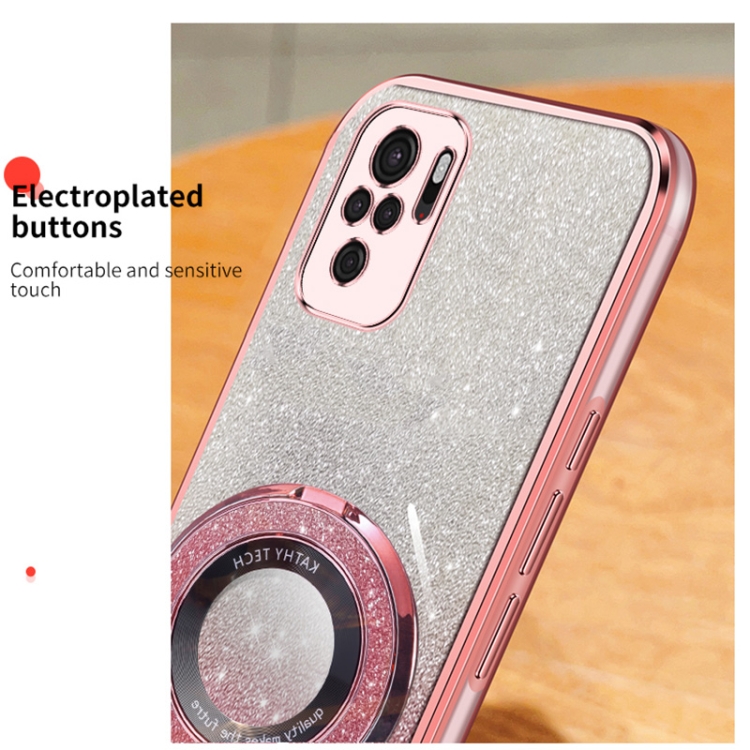 Funda de Teléfono de TPU con Soporte Redondo y Purpurina Degradada Chapada para Redmi Note 10 4G (Rosa)