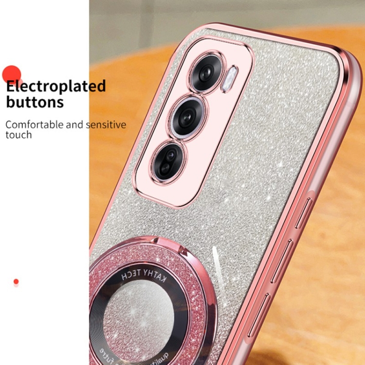 Funda de Teléfono de TPU con Soporte Redondo y Purpurina Degradada para Oppo Reno12 Pro (Negro)