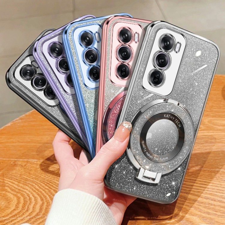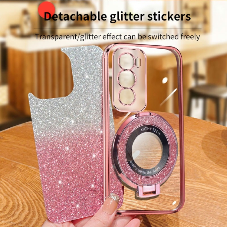 Funda de Teléfono de TPU con Soporte Redondo y Purpurina Degradada para Oppo Reno12 Pro (Plateada)