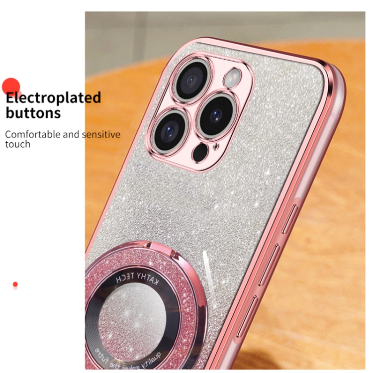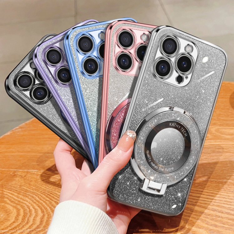 Funda de Teléfono TPU con Soporte Redondo Purpurina Degradada para iPhone 16 Pro (Plateada)