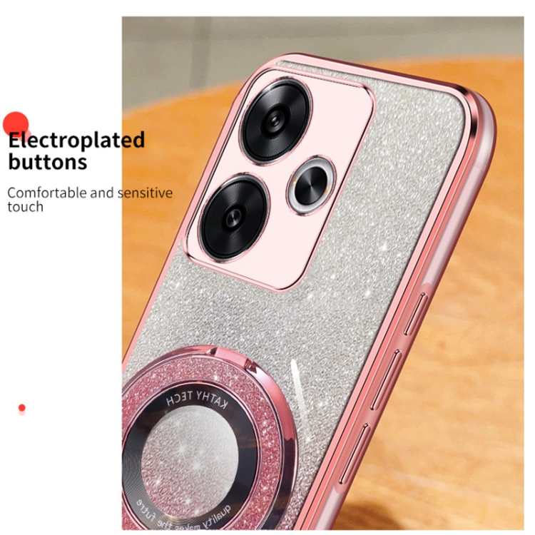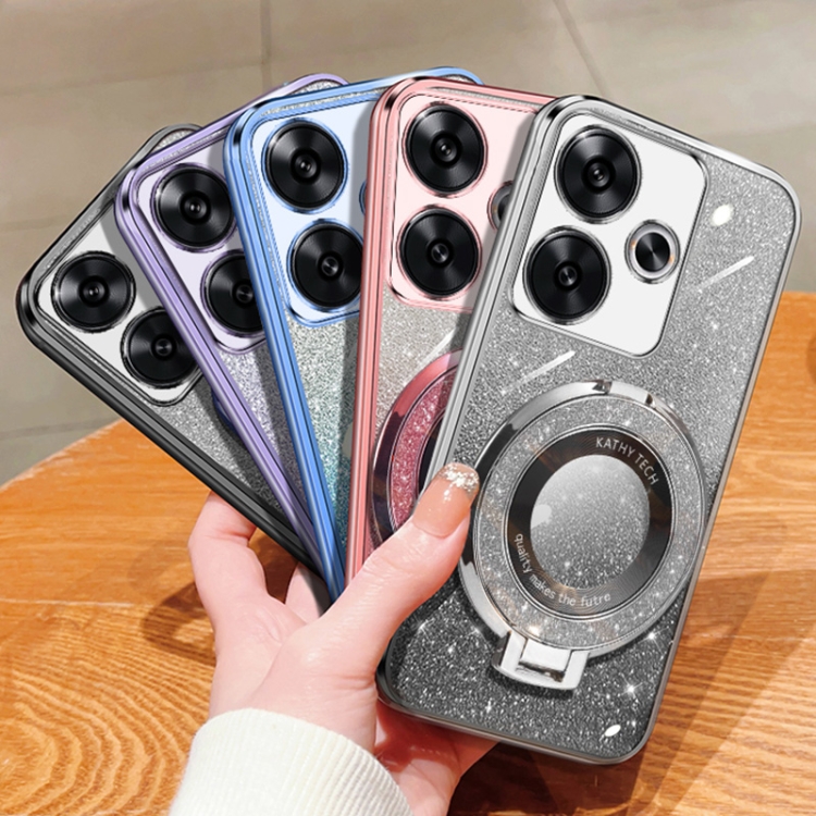 Funda de Teléfono de TPU con Soporte Redondo y Purpurina Degradada Plateada para Redmi Turbo 3 (Negro)
