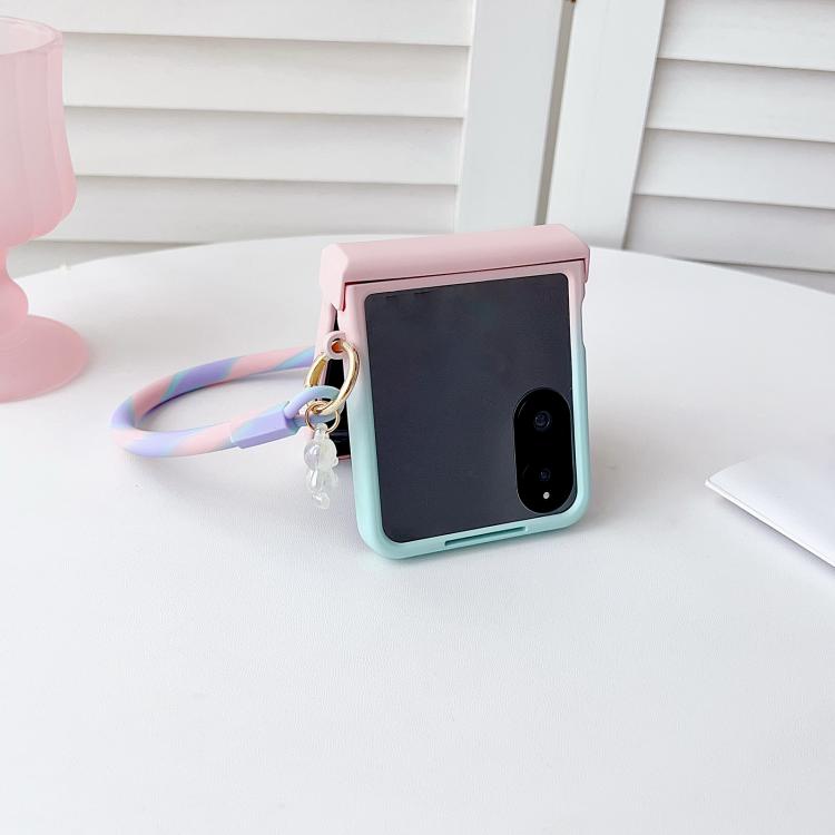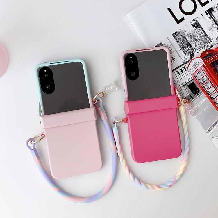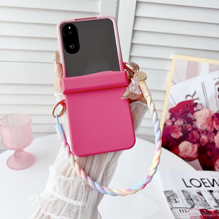 Funda de TPU con hebilla lateral integrada y pulsera para Xiaomi Mix Flip 2 (rosa y rojo rosa)