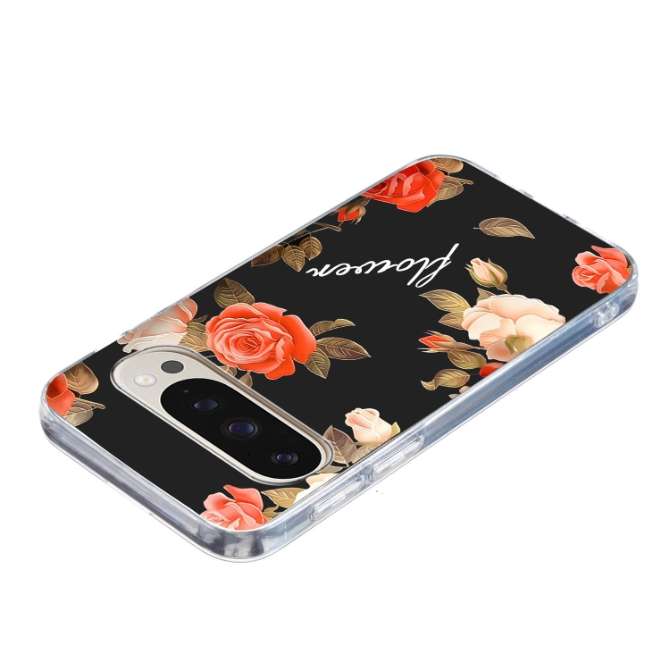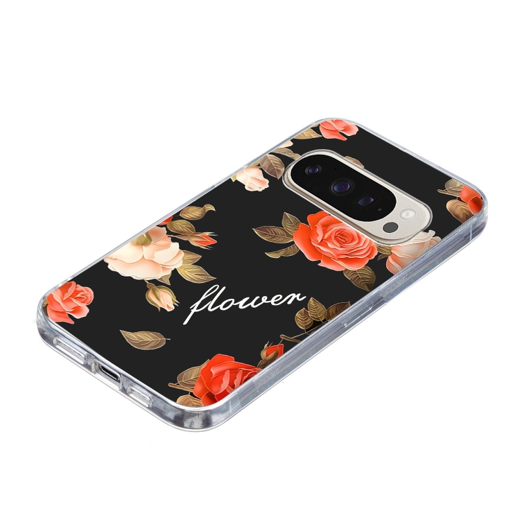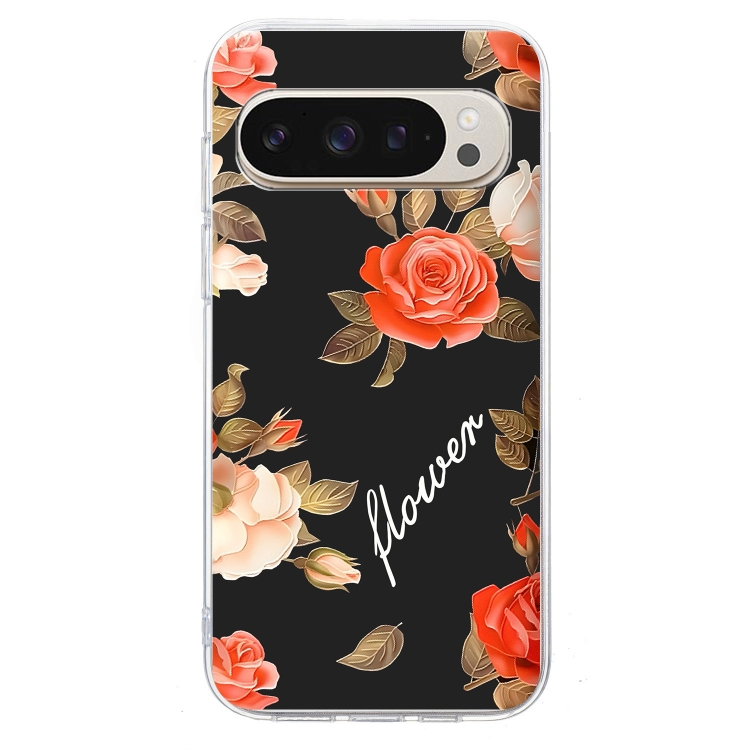 Funda TPU Google Pixel 9 Pro XL con Patrón de Pintura Colorida (Flores) (Negro)