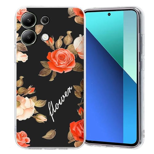 Funda de TPU con Patrón de Pintura Colorida para Redmi Note 13 4G (Flores En Negro)