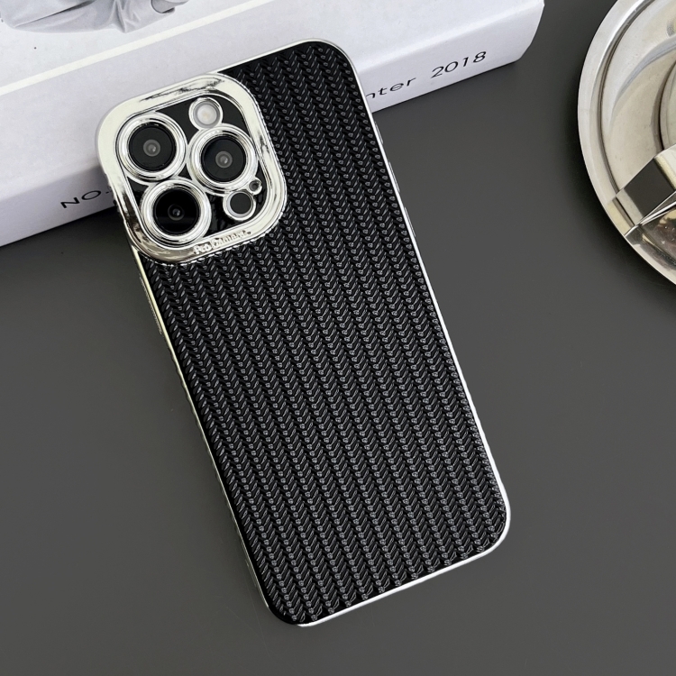 Funda TPU Textura Granulada Borde Plateado Galvanizado para iPhone 16 (Negra)