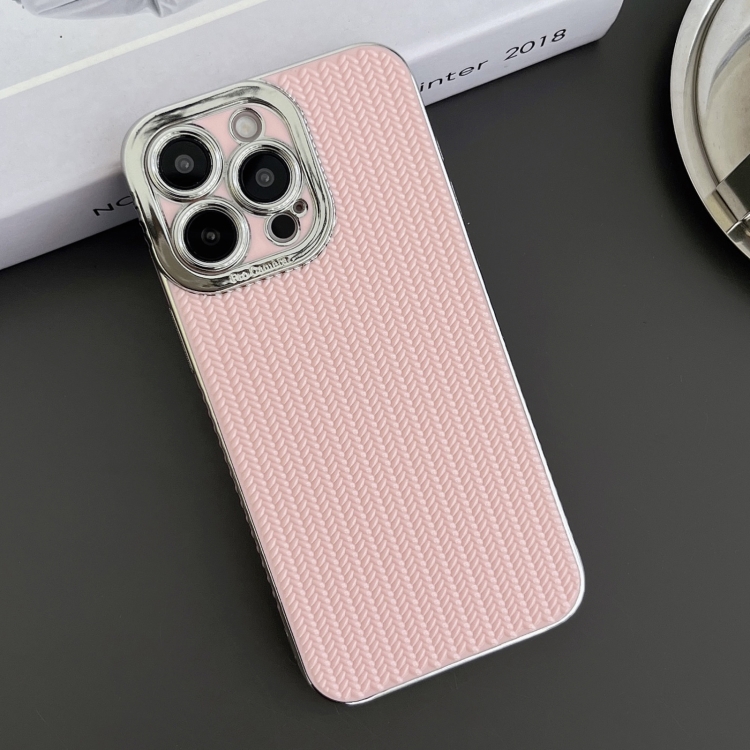 Funda TPU iPhone 16 Textura Granulada Borde Plateado Galvanizado (Rosa)