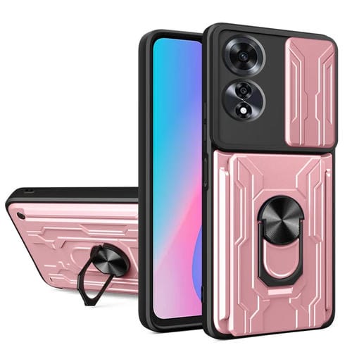 Funda Deslizante de TPU y PC con Ranura para Tarjetas para Oppo A60 4G (Oro Rosa)