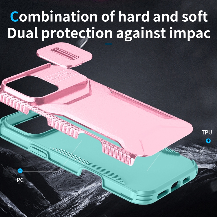 Funda Deslizante Camshield para iPhone 16 Pro Max (Rosa + Gris Verde)