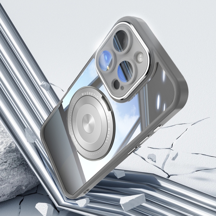 Funda híbrida Acrílico y TPU con Soporte Magsafe para iPhone 16 Pro 360 (Gris)
