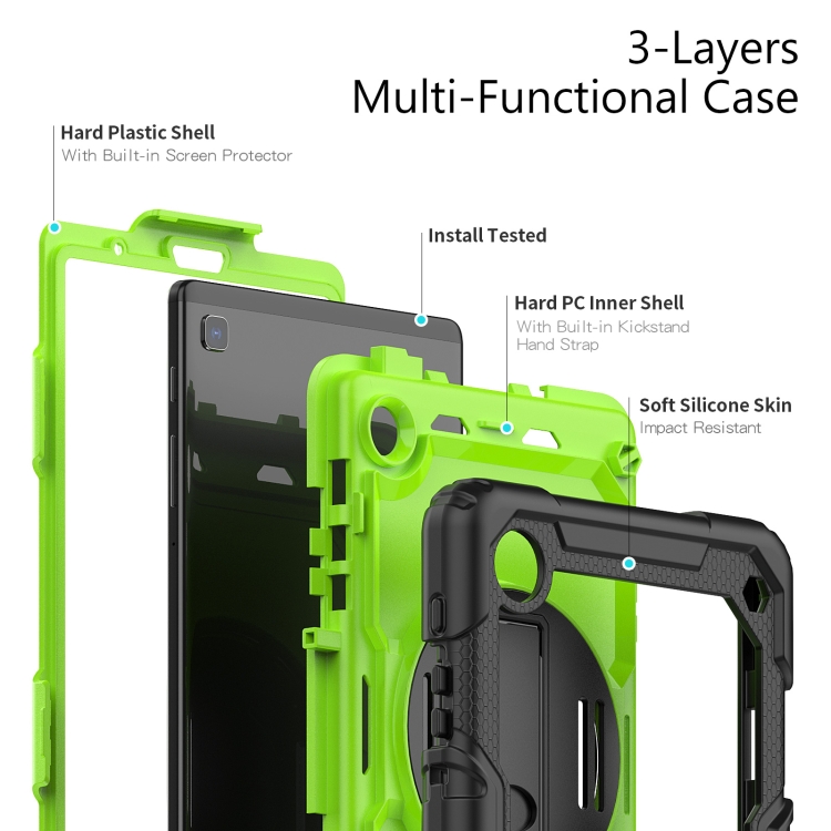 Funda híbrida de silicona para Tablet Samsung Galaxy Tab A7 Lite T220 con correa para el hombro (Amarillo, Verde y Negro)