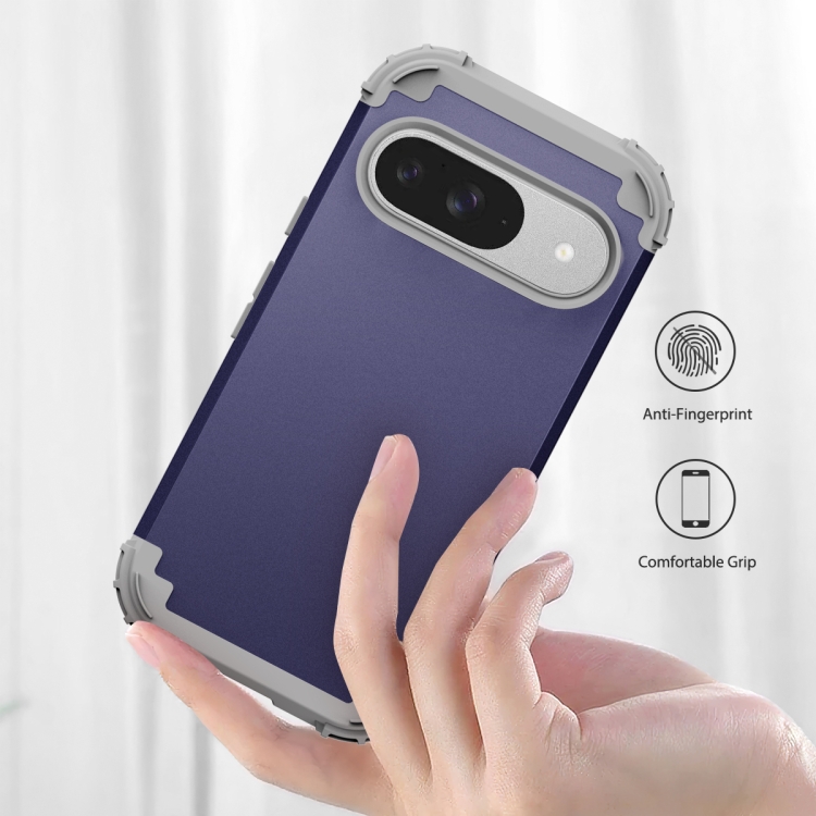 Funda híbrida silicona para Google Pixel 9 3 en 1 a prueba de golpes PC (Azul Marino y Gris)