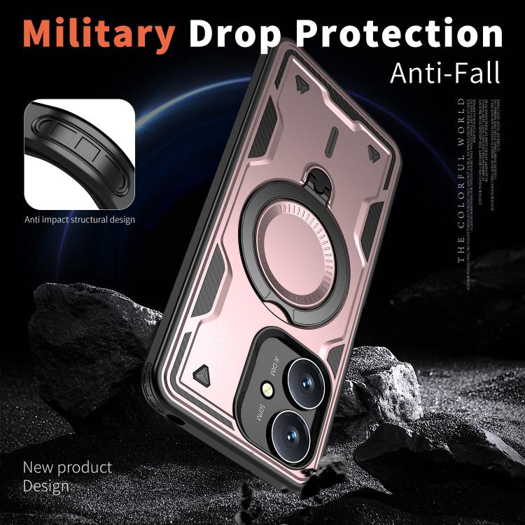 Funda híbrida de TPU con soporte de anillo MagSafe para Redmi 13C 5G (oro rosa)
