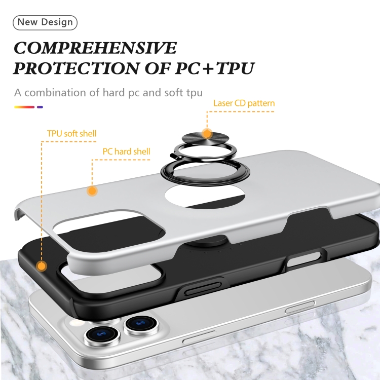 Funda Híbrida TPU con Soporte Magnético Anillo PC para iPhone 16 Pro Max (Plateada)