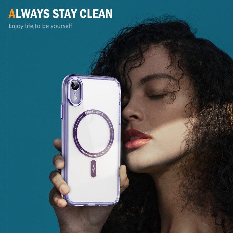 Funda Híbrida TPU y PC con Airbag Magsafe para iPhone Xr (Morado Transparente)