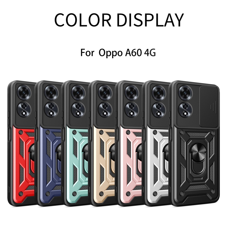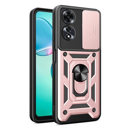 Funda Híbrida de TPU y PC con Diseño de Cámara Deslizante para Oppo A60 4G (Oro Rosa)