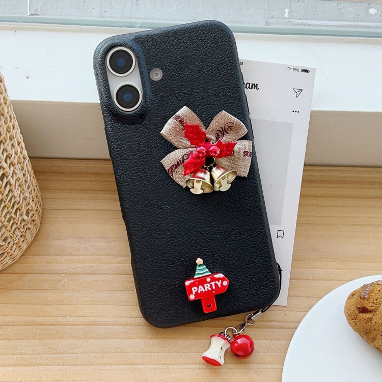 Funda híbrida TPU y PC iPhone 16 diseño campanas navideñas (Negra)
