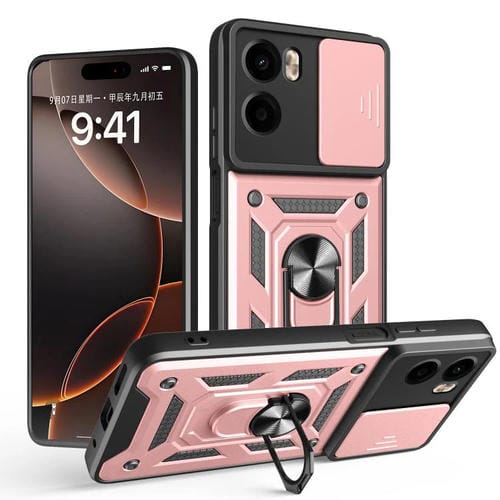 Funda híbrida TPU y PC con cubierta deslizante para Cámara Motorola Moto G05 (Oro Rosa)
