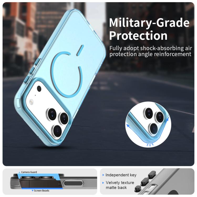 Funda híbrida de TPU y PC Magsafe con diseño circular fino tipo C para iPhone 17 Pro (azul)
