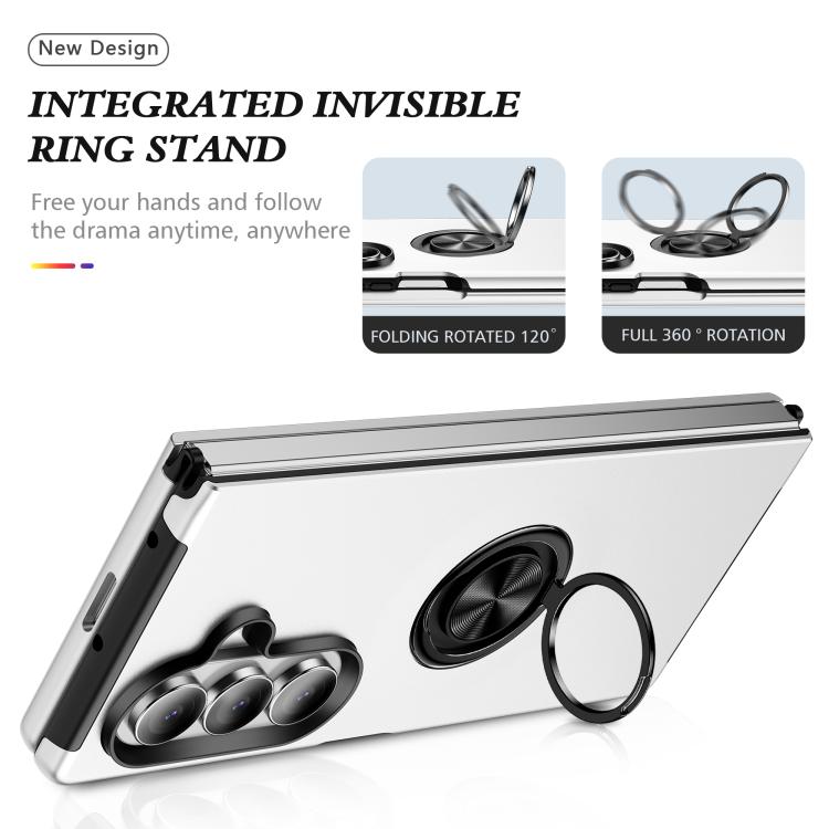 Funda magnética de PC + TPU para Samsung Galaxy Z Fold7 5G con soporte de anillo invisible (plateada)