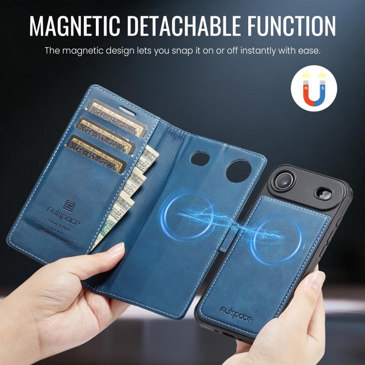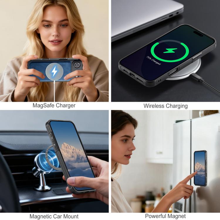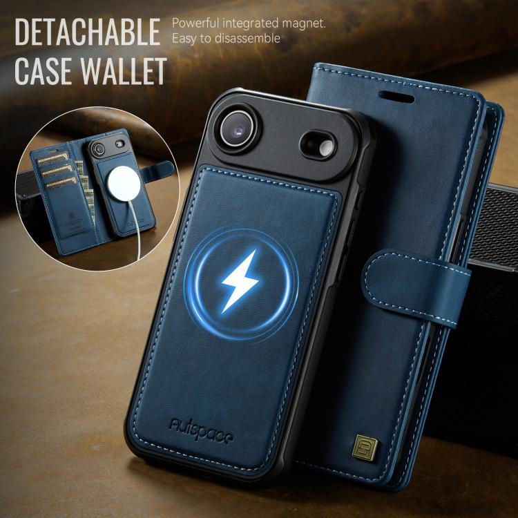 Funda magnética MagSafe AutSpace A05 2 en 1 con textura de piel de becerro retro para iPhone Air (Azul)