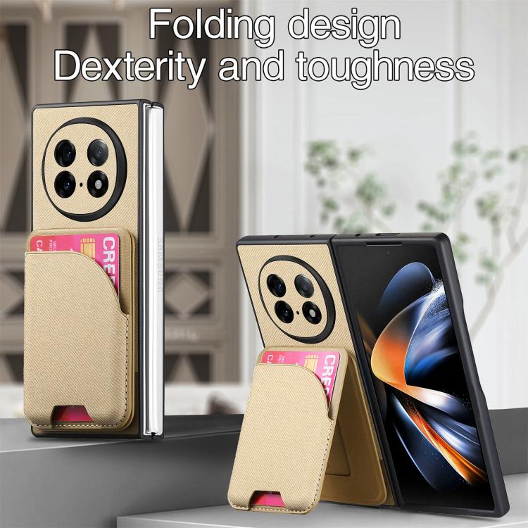 Funda Magnética para Oppo Find N5, de Piel y Sarga, con TaRJetero (Caqui)