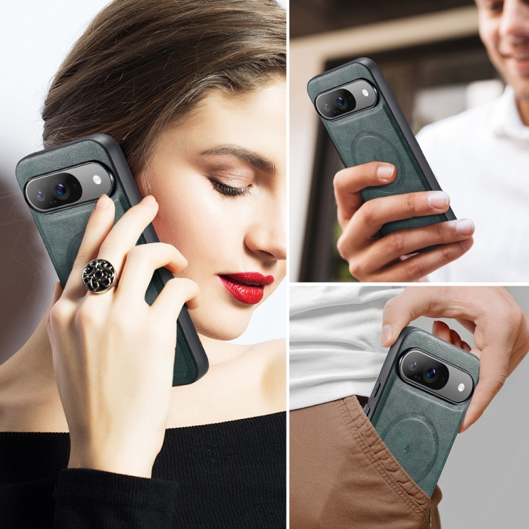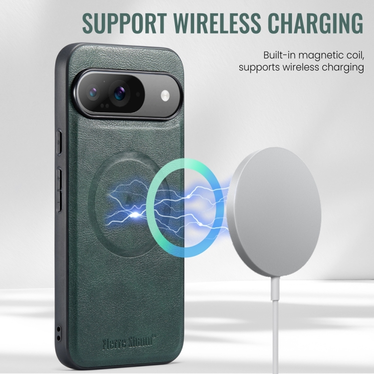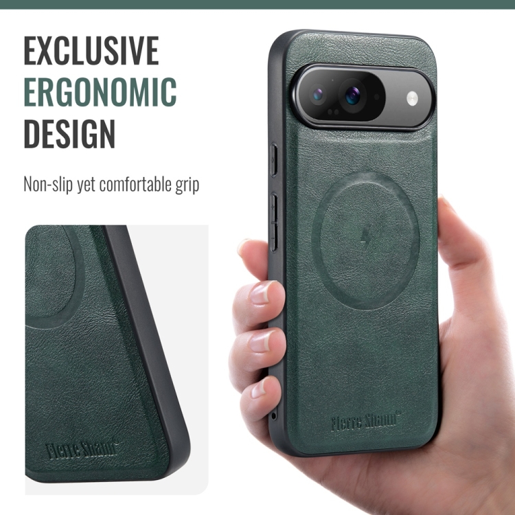 Funda Magnética Fierre Shann para Google Pixel 9 Pro XL con Textura de Piel de Vaca (Verde)