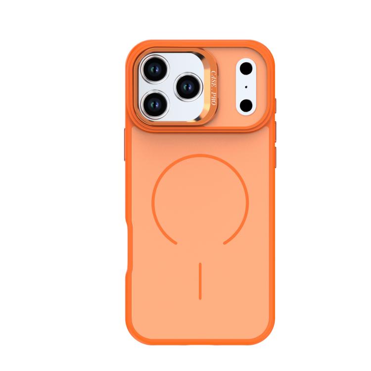 Funda Magsafe para iPhone 17 Pro Max con soporte para cámara y tacto suave en contraste de colores brillantes (naranja)
