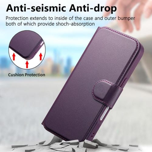 Funda Neo de cuero con correa de agarre para el dedo para iPhone 17 (morada)