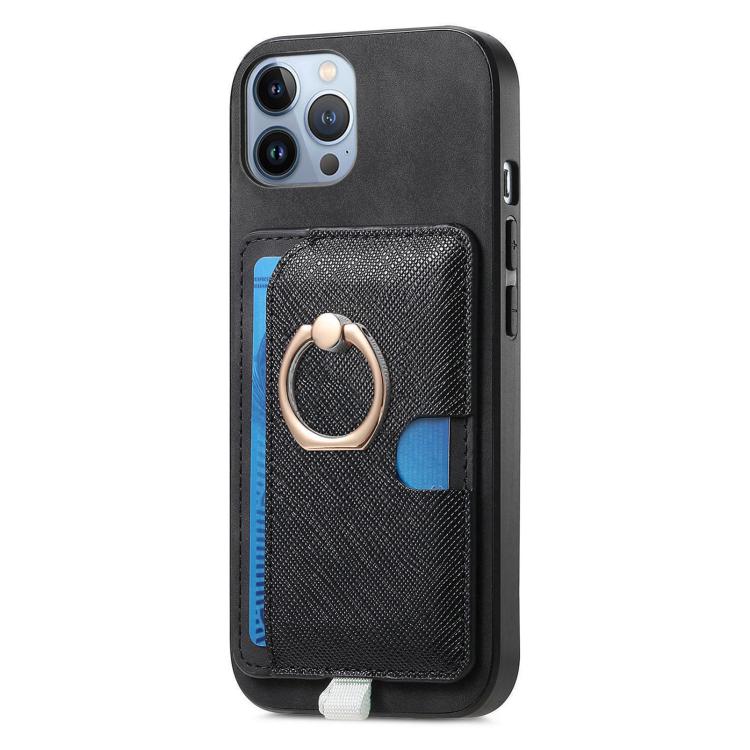 Funda para iPhone 11 Pro Max con Ranuras para Tarjetas Diseño Retro Cruz Anillo Lateral (Negro)
