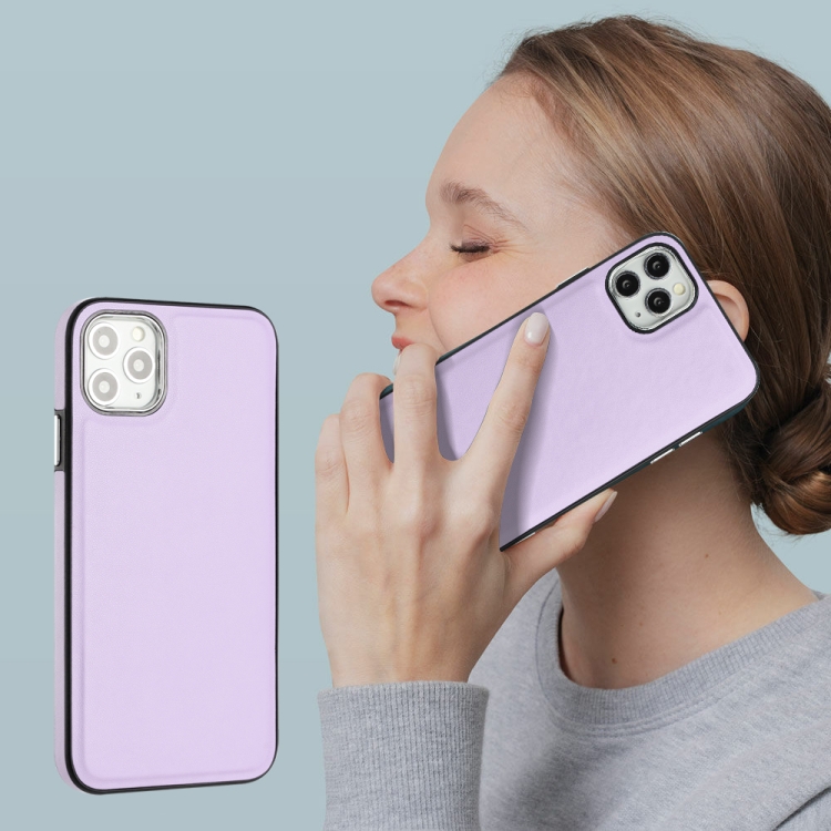 Funda para iPhone 11 Pro Max Textura de Cuero Cobertura Total (Púrpura)